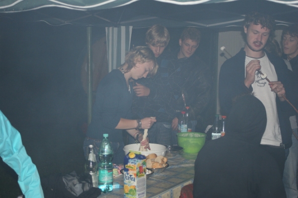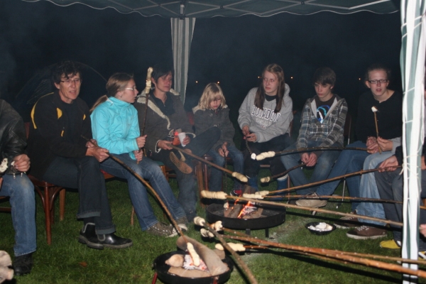 Jana hat für uns wieder excelenten Stockbrotteig vorbereitet. Daher war es uns eine Pflicht, Stockbrot am offenen Feuer zu backen. Auf den Bilder sieht man, mit welcher Hingabe und Professionalität Jana das Stockbrot vorbereitet und wie es dann von allen in offener Flamme gebacken wird. Zum Schluß noch ein nettes Foto von allen, die es bis zum Schluß ausgehalten haben.