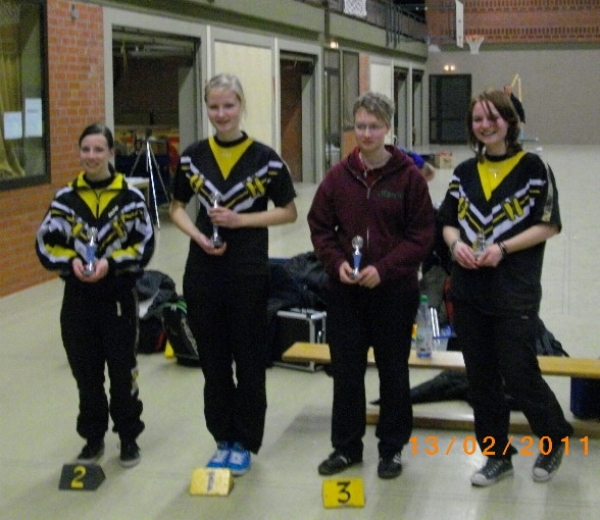 Auch bei der 24. Auflage des Stader Hallenturnieres am 13.02.2011 waren die Bogenschützen des SV Bassum von 1848 erfolgreich vertreten. Bei den jüngsten belegte Alina Oostinga mit 421 Ringen in der gemischten Schülerklasse C den 3. Platz. In der gemischten Schülerklasse B stellte die große Schwester Janine Oostinga mit 548 Ringen alles in den Schatten. In der weiblichen Jugendklasse startete die Landesmeister-Mannschaft durch: 1. Platz Franziska Frerichs(549 Ringe), 2.Platz Svenja Böttcher(532 Ringe), 4.Platz Jana Lemke(520 Ringe). In der Schützenklasse belegte Martin Schulze mit 542 Ringen einen hervorragenden 5.Platz, Claus Böttcher schoß sich in der Altersklasse mit 514 Ringen ebenfalls auf den 5.Platz, Stefan Nickisch mit 495 Ringen auf den 9.Platz. Bei den Compoundschützen erreichte Christian Noack mit 537 Ringen in der Jugendklasse den 3.Platz, Pascal Platter(544) und Gabor Geges(538) hatten gegen die Spitzencompounder aus Rethwisch (Schleswig-Holstein) und Hamburg hart zu kämpfen und erreichten Platz 8 und 9. Bei den Altersdamen belegte Anita Tadken Ringgleich mit der Zweitplatzierten (543 Ringe) auf Grund von weniger 10ern den 3. Platz. Als Resumee zwei erste, ein zweiter, drei dritte, einen vierten und zwei fünften Plätze bei 13 Startern - ein Erfolg!! Leider wieder ein erster Platz zu wenig, denn wieder einmal zog der SV Wiepenkathen einen dritten ersten Platz aus dem Zauberhut und durfte zum dritten Mal den Wanderpokal "Diana" für sich beanspruchen.