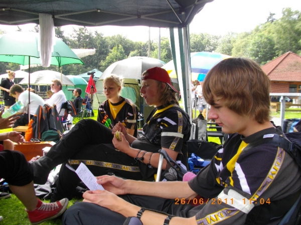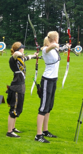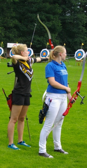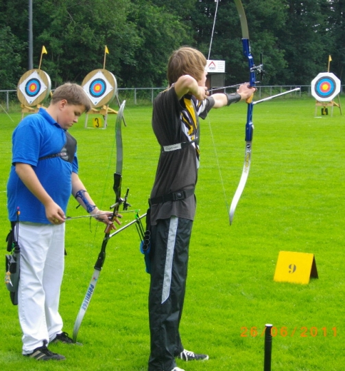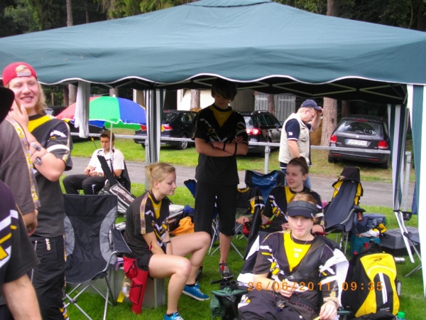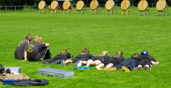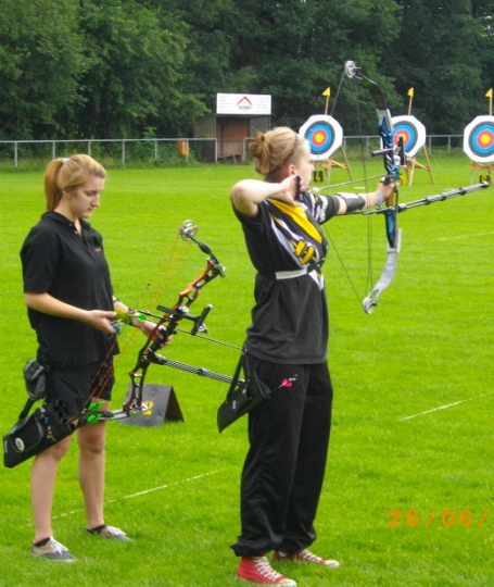 Sieben Medaillen - drei Landestitel und zwei Landesrekorde für die 1848er Bogenschützen Die Landesverbandsmeisterschaft des Nordwestdeutschen Schützenbundes in Zeven war für die Bogenschützen des SV Bassum von 1848 ein voller Erfolg. Mit 17 Schützen waren sie zur LM gefahren, mit drei Landestiteln, zwei Landesrekorden, einer Silbermedaille und drei Brozenen kehren sie zurück. Allen voran die Schülerin B Janine Oostinga, die mit 637 Ringen nicht nur den Landesrekord aus dem Jahre 2008 mal eben um 47 Ringe nach oben schraubte, nein sie stellte auch ihre männl. Kontrahenten voll in den Schatten (bester Junge 600 Ringe). In der Jugendklasse konnten dieses Mal die Mannschaftskollegen von Franziska Frerichs auftrumpfen, denn Franziska hatte mit Materialproblemen zu kämpfen und belegte mit 545 Ringen "nur" den 3.Platz, während Jana Lemke mit 565 Ringen auf dem Silberpodest landete. Bei den Jungen sorgte Marcel Schwettmann mit persönlicher Bestleistung von 612 Ringen und ebenfalls einem Bronzeplatz, dass das Mannschaftsergebnis von 1722 Ringen zum Landestitel und gleichzeitig zur Erhöhung des selbstaufgestellten Landesrekordes aus dem Jahre 2009 führte. Bei den Compoundern machte es in der Jugendklasse christian Noack nach. Mit 647 Ringen wurde er souverän Landesmeisters 2011. Anita Tadken konnte sich nach einem 8. Platz in der Qualifikation in der Finalrunde bis auf den Bronzeplatz vorkämpfen. Weitere Platzierungen: Recurvebogen Jugend weibl.