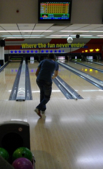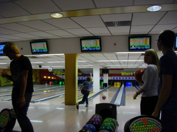 19 Bogensportler versuchten, mehr oder weniger, erfolgreich die Bowlingkugel in die Kegel zu schieben. Alle hatten viel Spaß und natürlich wurde intensivst gewetteifert. Hier wurden einmal ganz andere Muskeln angesprochen und sicherlich wird der eine oder andere es am nächsten Tag gespürt haben. Auch wenn das Bowlen nicht ständig trainiert wird, konnte man von Runde zu Runde gewisse Leistungssteigerungen beobachtet werden und so fielen im Laufe des Abends einige STRIKES und SPARES. So wurden in drei Runden insgesamt 4082 Points geholt und ein Rundenschnitt von immerhin 76 erzielt (Sicherlich Lachhaft für den Profi-Bowler, aber der kann ja gerne mal Bogenschießen kommen^^). Eins waren sich alle einig, dieses Event hat großen Wiederholungsbedarf und alle hoffen, dass dann auch die mit von der Partie sind, die dieses Mal durch Krankheit, Beruf oder andere Verpflichtungen leider verhindert waren.