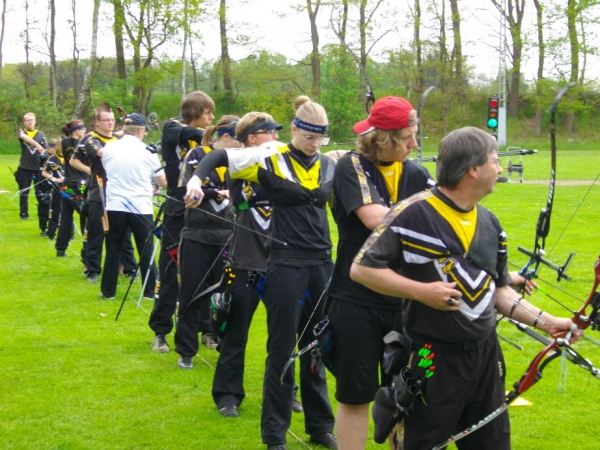 Nachdem die Vereinsmeisterschaften und das Himmelfahrt-Sternturnier unter einem wettertechnisch positiven Stern standen, hatten die Bogensportler der beiden Bassumer Schützenvereine SV Bassum von 1848 und SG Bassum 98 am 11.05.2013 bei den Kreisverbandsmeisterschaften des KSV Bassum mit einigen Widrigkeiten zu kämpfen. In der ersten Runde ging es noch gut, aber in der zweiten Runde spielte das Wetter nahezu alle Register. Erst wurde es durch dicke, schwarze Wolken sehr dunkel, dann schoß der Wind in Böen aus wechselnden Richtungen über den Platz und zu allem Überfluß ergoß sich der Inhalt der dunklen Wolken in Form von sehr kaltem Regen über den Bogensportlern. Die Temperatur sank von zuvor knapp 17 Grad auf 8 Grad und forderte den Bogensportlern einiges ab. Nur die Hartgesottenen konnten ihren Leistungsstand halten. So Guido Rudolph von der SG Bassum 98, der mit 683 Ringen bei den Compound-Altersschützen auf der neu festgelegten Meisterschaftsdistanz für Compound, 50 m auf 6-Ring Spot, eine erste, saftige Kreisbestmarke setzte. Auch der Compound-Junior Christian Noack vom SV Bassum von 1848, relativ unbeeindruckt vom Wetter, schoß mit 654 Ringen eine recht beachtliche Bestmarke. Selbst Alina Oostinga in der Schüler B-Compoundklasse konnte ihre alte Kreismarke um 86 Ringe auf 527 erhöhen.