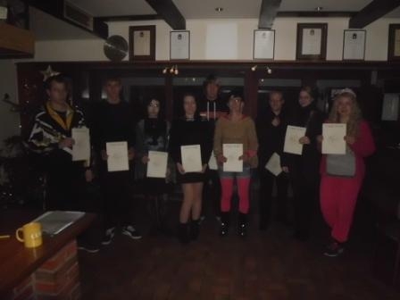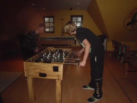 Das letzte große Hightlight in jedem Kalenderjahr ist seit 2010 das interne Langzeit-Mannschaftsturnier kurz vor Ende des Jahres. Nachdem im letzten Jahr 13 Std. geschossen wurde, waren in diesem Jahr 14 Stunden dran. Die Mannschaften setzen sich aus mind. drei Schützen zusammen, die zuvor ausgelost werden. Das Organisationsteam nimmt am Anfang eine Leistungsbewertung vor uns stellt dann drei unterschiedliche Leistungsgruppen zusammen, aus denen dann je einer in die Mannschaft gelost wird. So kamen sieben Mannschaften zustande. die sich neben dem Bogensport auch in der Kategorie Luftgewehr aufgelegt, im Kickern, Pool-Billard, Darten, Tischtennis, an der WII und auch in Gesellschaftsspielen 14 Stunden beweisen mussten und wertvolle Siegpunkte einsammeln mussten. Dazu war den Teilnehmern freigestellt, ob sie sich kostümieren wollten. Das beste Kostüm wurde dann am Ende, nach Stimmen aller, von Anita Tadken mit einem Pokal prämiert. Als besonderes Schmankerl hatte sich das Organisationsteam eine besondere Art des Mentalen Trainings und der Hand-Auge-Koordination ausgedacht... es musste ein Schal mit einer Breite von 25 Maschen gehäkelt werden und am Ende wurde die Länge mit Punkten bewertet ;-) Die Mannschaften: Mannschaft 1: Wicky & die starken Männer (Franziska Frerichs, Nane Sophie Beuke, Matthias Noack) Mannschaft 2:Die bunte Mischung (Jo König, Annika Balcke, Patrick Thiermann) Mannschaft 3: Die HUGOs (Nina Bernstein, Torsten Oostinga, Marcel Schwettmann) Mannschaft 4: Die Steckenlasser (Kerstin Schwemme, Jens Mahlstedt, Christian Noack) Mannschaft 5: - ohne Namen - (Janine Oostinga, Gaby Schwettmann, Lüder Mohrmann) Mannschaft 6: - ohne Namen - (Lea Struwe, Marcel Trachsel, Claus Böttcher) Mannschaft 7: - ohne Namen - (Alessa Voelskow, Aaron Niemann, Pascal Platter) Pünktlich um 10.00 Uhr fiel der Startschuß am 29.12.2013. Die Sportler gaben in allen Kategorien ihr Bestes und hatten sichtlich viel Spaß. Leider hatten die externen Gäste aus dem letzten Jahr in diesem Jahr zeitliche Koordinierungsprobleme und so war nur die Freundin eines 1848er aus dem befreundeten Wiepenkathen, Lea Struwe, vor Ort und konnte das Treiben der 1848er miterleben. Es wurde geschossen und gehäkelt, was das Zeug hält, es fanden heftige Wettkämpfe im Poolbillard, Dart, Kicker oder an der Tischtennisplatte statt. Natürlich war auch für das leibliche Wohl gesorgt. Am Morgen gab es belegte Brötchen, zu Mittag briet man sich gemeinsam Hamburger oder bastelte Hot Dogs, am Nachmittag gab es wieder die leckersten Kuchen und am Abend konnte man die liebevoll von Niklas, in Zusammenarbeit mit Gaby, zubereitete ungarische Paprika czirke (Paprika-Gemüse-Suppe mit Huhn) genießen. 14 Stunden Action am Stück. Das Ziel für diese Veranstaltung war: mindestens 5500 Pfeile insgesamt zu schießen. Sicherlich denkt sich jeder Bogensportler, ist doch locker, einfaches Rechenexempel sieben Mannschaften, jede Runde (á 36 Pfeile) sind 252 Pfeile, mal eben 22 Runden schießen... null problemo. Am Anfang des Tages war es auch kein Problem, man war noch frisch, voller Energie und Tatendrang. Aber nach 10 - 12 Stunden gibt es dann doch den einen oder anderen Konditionsmangel. Nicht zu vergessen, man hatte ja durch die anderen Aktivitäten kaum Zeit zur Regeneration und am Ende siegt natürlich der sportliche Ehrgeiz -- unsere Mannschaft soll die beste sein. So wurde Stunde um Stunde geschossen, gehäkelt, gedartet, gezockt - ab 18.00 Uhr war der Luftgewehrstand geöffnet und Manfred Tinnemeyer beaufsichtigte das Ganze und unterstützte mit wertvollen Tipps. Beim Bogenschießen überwachte Gerd Schwettmann als Kampfrichter das geschehen und in der GAMEZONE im Obergeschoß hielt Sohn Daniel Schwettmann das Reglement und die Wertung im Auge. Akriebisch wurden die Ergebniszahlen bearbeitet, nach jeder Runde der Highscore á 36 Pfeile, die aktuelle geschossene Anzahl, Hochrechnungen nach Zeit und Schußfrequenz getätigt. Nach der ersten Runde sahe es sehr gut aus... die Prognose bot die Zahl 6415 Pfeile. Der Tages-Highscore startete mit 329 Ringen von Franziska Frerichs und so stand auch die Mannschaft 1 auf dem 1. Platz. Allerdings bereits im 2. Durchgang wurde der Highscore von Matthias Noack auf 340 Ringe erhöht und die Prognose sank auf 5721 Pfeile. immer noch im grünen Bereich. Um 14:58 war der aktuelle Highscore 344 Ringe von Marcel Trachsel, bis dato waren 2016 Pfeile erreicht, die Prognose stand auf 5721 Pfeile und die Mannschaft 1 führte mit 2531 Ringen vor M5 (2515) und M7(2498). Nach sieben Stunden, um 17.25 Uhr setzte Marcel Trachsel noch einen drauf und erreichte den Highscore aus dem Jahre 2012: 351 Ringe, 2772 Pfeile waren erreicht, allerdings sank die Hochrechnung auf 5679 Pfeile. Die Mannschaft 1 war immer noch auf dem 1.Platz mit 3492 Ringe vor M5 (3488), mittlerweile hatte sich M6 vor M7 mit 3449 zu 3439 Ringen geschoben. Um 19.30 Uhr waren 3780 Pfeile geschossen und die Prognose stand nur noch auf 5630 Pfeile und auch an der Spitze hatte sich nichts verändert. Im 18. Durchgang fand ein Wachwechsel statt, die Mannschaft 5 setzte sich mit 5710 Ringen vor die M1 (5690) und M7(5673). Diese Führung ließen sie sich nicht mehr nehmen. In der Bogenrunde siegte nach 14 Stunden mit 7039 Ringen die Mannschaft 5 mit Janine Oostinga, Gaby Schwettmann und Lüder Mohrmann vor Mannschaft 1 (6950 Ringe) mit Franziska Frerichs, Nane Sophie Beuke und Matthias Noack und Mannschaft 7 (6935 Ringe) mit Alessa Voelskow, Aaron Niemann und Pascal Platter). Dahinter dann Mannschaft 6 (6886 Ringe), Mannschaft 3 (6767 Ringe), Mannschaft 4 (6752 Ringe) und Mannschaft 2 (6483 Ringe). Aber, das sollte ja noch nichts heißen... schließlich gab es ja noch die anderen Disziplinen. So siegte z.B. im Luftgewehrschießen die Mannschaft 2 mit Tageshöchstergebnis 20 Schuß 187 Ringe durch Annika Balcke oder die Mannschaft 6 siegte im Tischtennis mit 95 Punkten und dann war ja auch noch das Häkeln..... In der Gesamtwertung bel