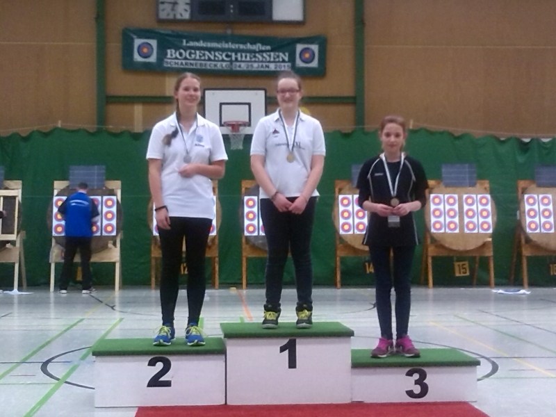 Bei den Junioren starteten Fabian Martens (550 Ringe, Platz 3) und Aaron Niemann (512 Ringe, Platz 6) mit dem Recurvebogen zusammen mit Alessa Voelskow (446 Ringe, Platz 2) bei den Juniorinnen als Mannschaft und wurden mit 1508 Ringen Landesmeister.