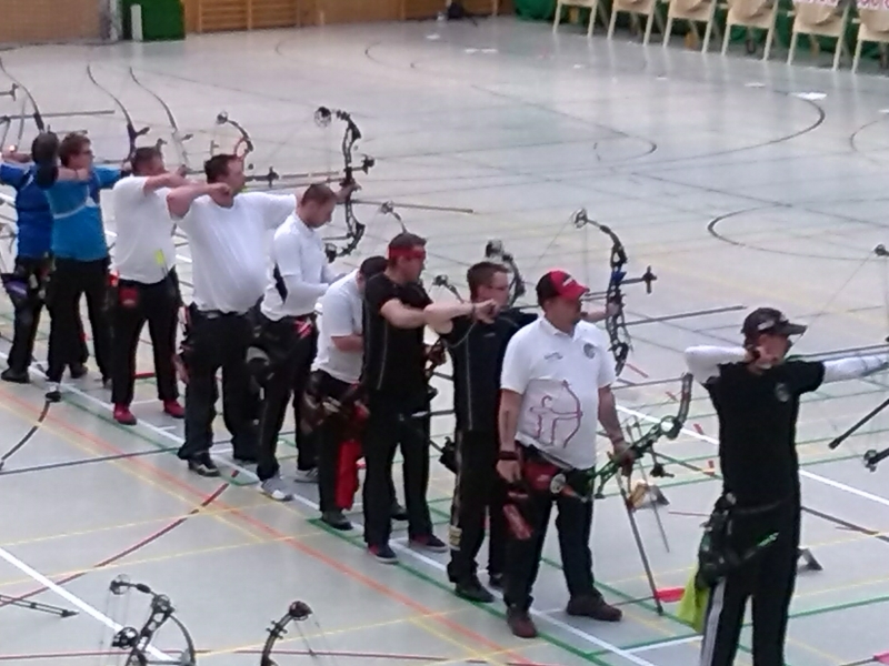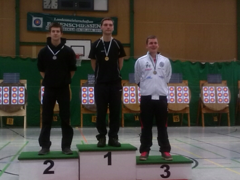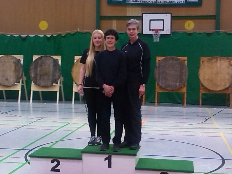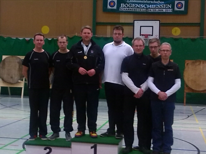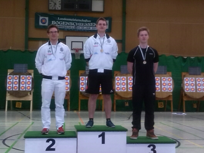 Am Sonntag starteten dann die Erwachsenen. In der Männerklasse Recurve konnte sich Lüder Mohrmann mit 562 Ringen und dem 3. Platz in der Qualifikation durchsetzen, scheiterte dann im 1/4-Finale gegen den späteren Bronzesieger Michael Schulze vom Auricher SV. Sein Vereinskamerad Marcel Schwettmann belegte mit 538 Ringen den 12. Platz.