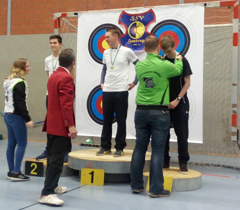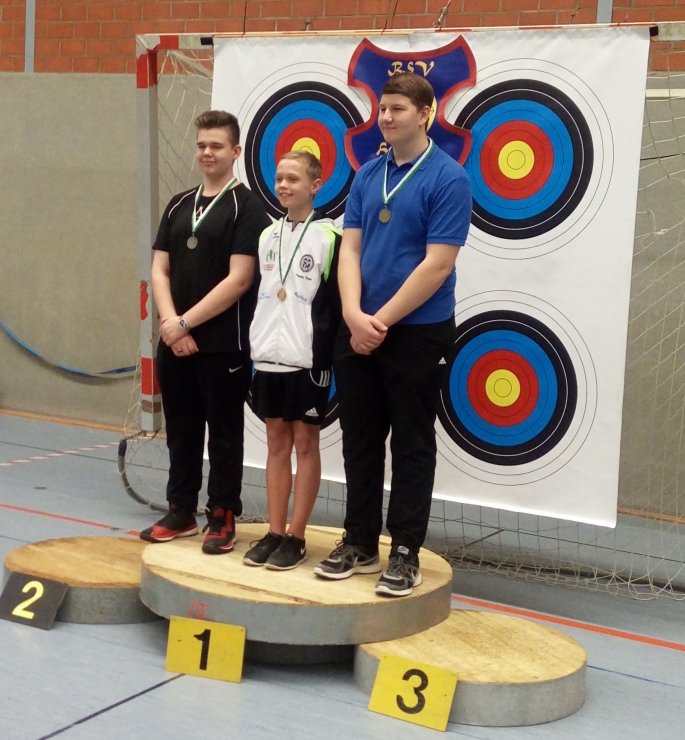 Dazu kamen zwei Silbermedaillen durch Altersdame Compound Anita Tadken und dem Recurve Jugendlichen Luca Ritterhoff. Den Medaillensatz komplettierten Recurve Schüler B Lars Meyer und Schüler A Tim Schröder mit einer Bronzemedaille.